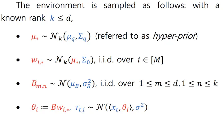 Preliminary Empirical Study of Low-Rank, Hierarchical Gaussian Linear Bandits